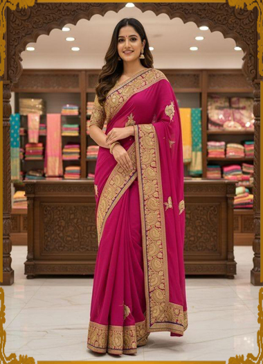 About this item Material: Saree: Georgette | Blouse: Satin Work: Pearl - White Embroidery Border Saree Length: Saree: 5.50 mt | Blouse: 0.80 mt Package Contents: 1 Saree With Unstitched Blouse | Occasion: Festive, Party Wear